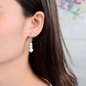 925 Sterling Silver Leverback Freshwater Pearls Earrings 3 Pearl Drop Dangle