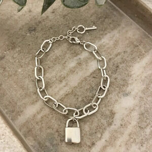♥ Beautiful Sterling Silver Lock Chain Link Bracelet with Dangle Key