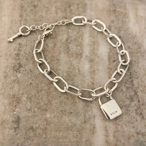 925 Sterling Silver Lock Bracelet Padlock Bracelet Lock & Key Bracelet