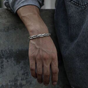 925 Sterling Silver Mens Bangle Bracelet Modern Twist Cuff Bracelet