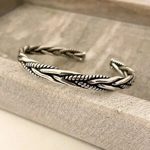 925 Sterling Silver Mens Bangle Bracelet Modern Twist Cuff Bracelet