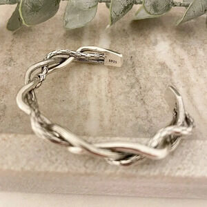 925 Sterling Silver Mens Bangle Bracelet Vintage Cuff Twist Bracelet Modern Cuff