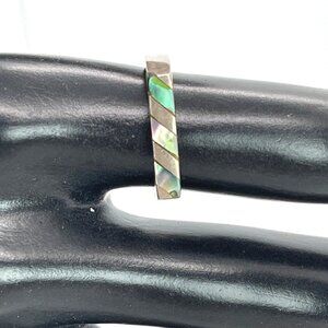 925 Sterling Silver Mexico Abalone Channel Inlay Iridescent Ring Size 6.25 VTG