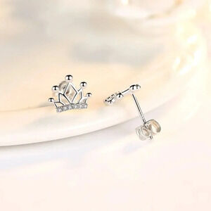 925 Sterling Silver Minimalist Crown Stud Earrings