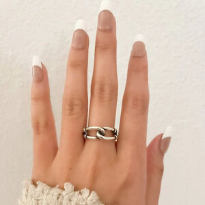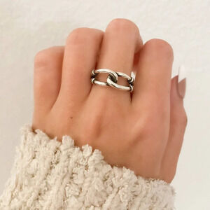 925 Sterling Silver Minimalist Ring Chain Ring Dainty Ring Band Buckle Ring