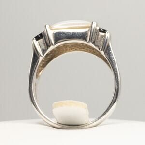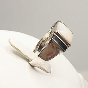 925 Sterling Silver Mother of Pearl & Onyx Inlay Ring Size 7