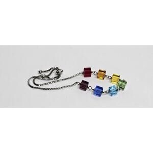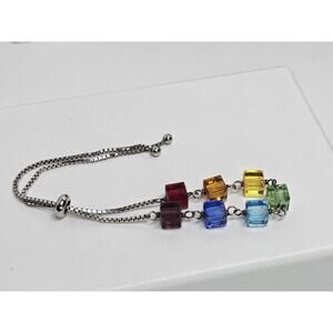 925 Sterling Silver Multi-colored Glass - Adjustable Bracelet
