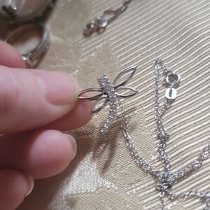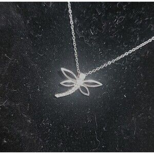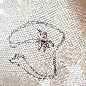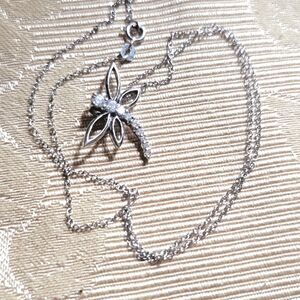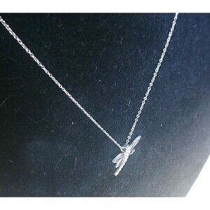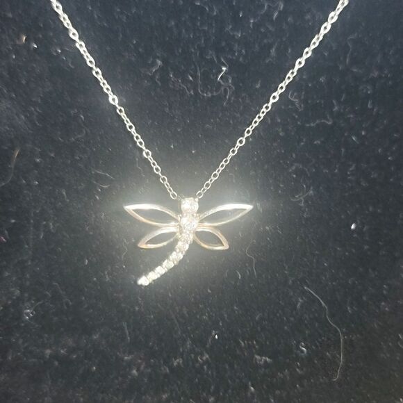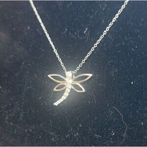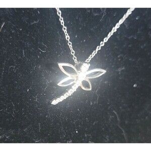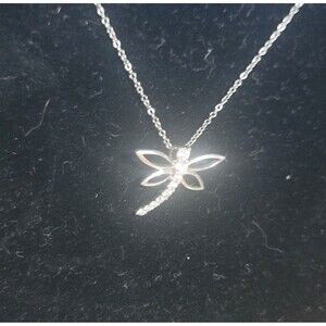 925 Sterling Silver Necklace 18" w fine Silver Dragonfly Pendant Cubic Zirconia