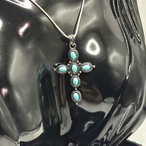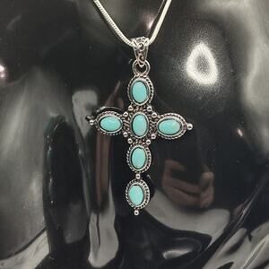 925 Sterling Silver Necklace w/ Cross Turquoise Christian Native Valentines New!