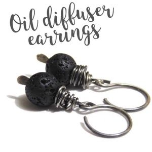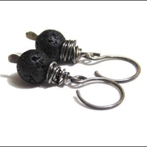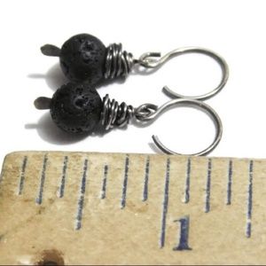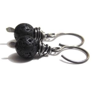 Genuine black lava stone earrings wrapped & suspended in solid 925 sterling silver (oxidized/antique)