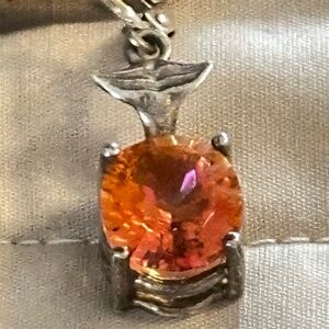 925 Sterling silver, artisan crafted, genuine Elbaite dangle earrings. Leaver backs & prong set. Beautiful fiery orange color!