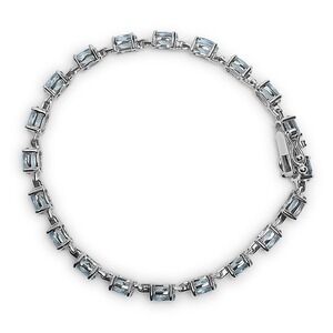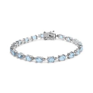Haus of Brilliance .925 Sterling Silver 11.0 Cttw Oval Shaped Created Light Blue Topaz Link Bracelet - 7 inch