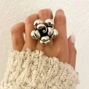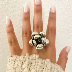 ♥ Beautiful Sterling Silver Oversized Chunky Flower Statement Ring