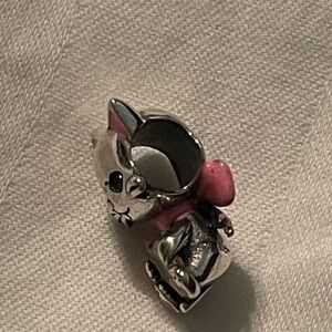 Pandora 925 Sterling Silver Cat with Pink Bow and colored stone Charm for bracelets. This is a great addition to any pet lover collection.