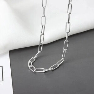 925 Sterling Silver Paperclip Necklace Minimalist Dainty Chain Link Necklace