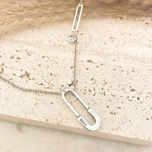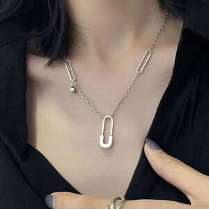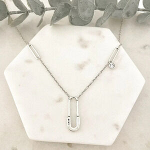 925 Sterling Silver Paperclip Necklace Safety Pin Necklace Modern Necklace
