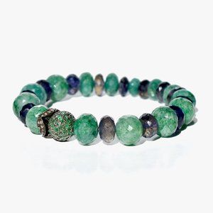 925 Sterling Silver Pave Emerald Diamond and Iolite Stretch Bracelet