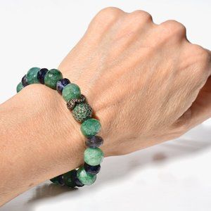 * Bracelet Faceted Rough Emerald Beads and Faceted Iolite Stones (8mm -11 mm in Size)