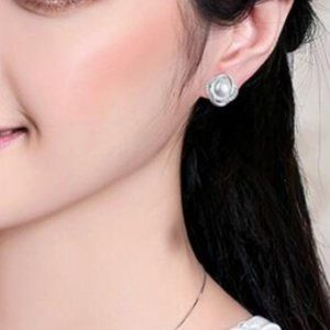 925 Sterling Silver Pearl Diamond Stud Earrings