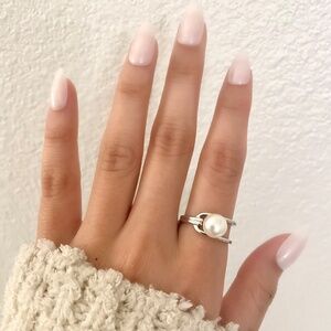 925 Sterling Silver Pearl Ring Minimalist Dainty Ring Pearl Accent Ring