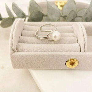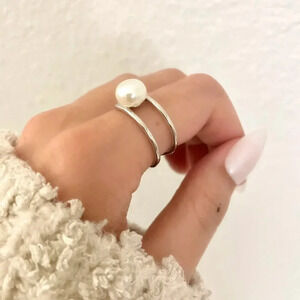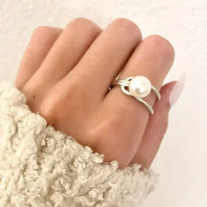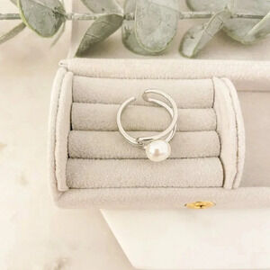 925 Sterling Silver Pearl Ring Minimalist Dainty Ring Pearl Accent Ring