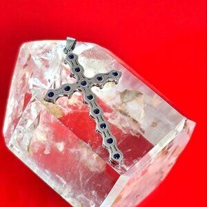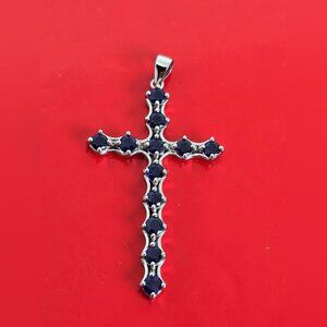 925 Sterling Silver Pendant Cross 2.5x4cm with Natural Sapphire Gemstone