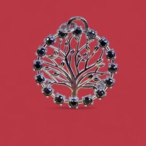 925 Sterling Silver Pendant "Tree Of Life" with Genuine Blk Moissanite Gemstones