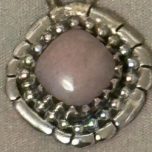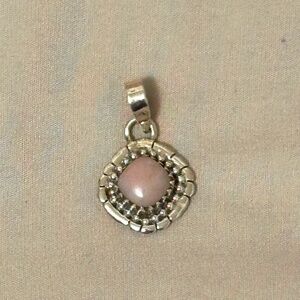 NWOT – Navajo/Artisan made. 925 Sterling Silver Pink Conch. Diamond Shaped Setting. Scalloped, beaded bezel. Large bail.