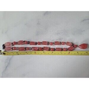 925 Sterling Silver Pink Glass Pendant Beaded Necklace Vintage