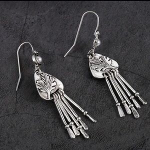 925 Sterling Silver Plated Boho Leaf Dangle Earrings