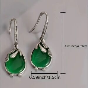925 Sterling Silver Plated Green Synthetic Stone Drop Earrings