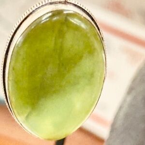 925 Sterling Silver Plated Green Nephrite Jade Oval Pendant. Cord is for display purposes, let me know if you would like to keep it.