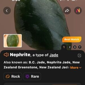 Nephrite is 1 of 2 minerals referred to as Jade. First used for tools & weapons, also used in creating artistic or ritual objects in green & other colors. Durable gemstone. Symbolized moral integrity in ancient China & esteemed in Mesoamerican & New Zealand Maori cultures.