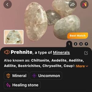 Prehnite formed crystals of pearly green or yellow luster. Particularly beautiful specimens used to carve pendants or rings. Discovered in Dutch colony of South Africa, named for military commander Hendrik von Prehn.