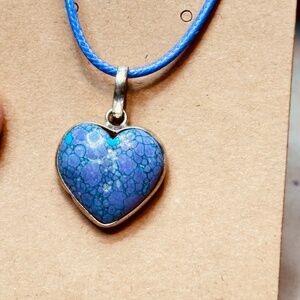 925 Sterling Silver Plated & purple w/some blue Howlite heart shaped pendant. Cord is for display purposes, let me know if you would like to keep it.
