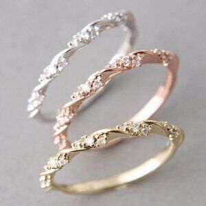 🔥925 Sterling Silver Plated Thin Twisted CZ Wedding Ring, MLNN1112