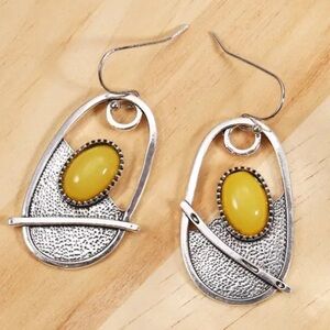 925 Sterling Silver Plated Yellow Synthetic Stone Boho Earrings
