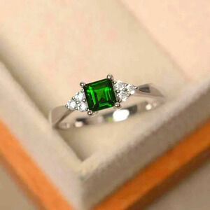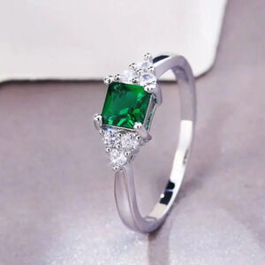 925 Sterling Silver Princess Cut Emerald Ring