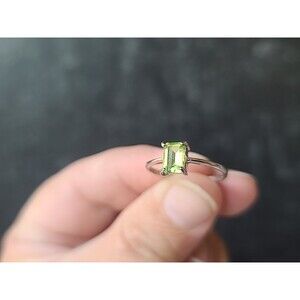 925 Sterling Silver Prong Set Peridot Rectangular Solitaire Ring, SIZE US 8