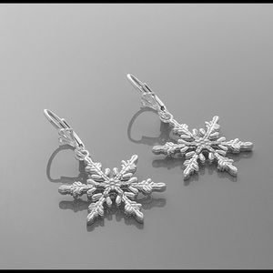 925 Sterling Silver RH plated Winter Snowflake Leverback Dangle Drop Earrings