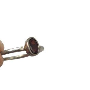 925 Sterling Silver Red Garnet Oval Stone Ring Size 8.75 Vintage Artisan
