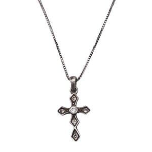925 Sterling Silver Rhinestone Cross Pendant Box Chain Necklace