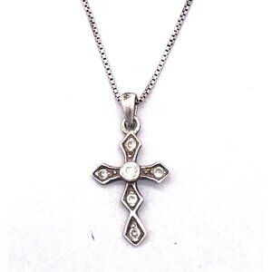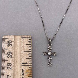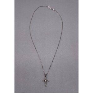 925 Sterling Silver Rhinestone Cross Pendant Box Chain Necklace 18.5 In Italy