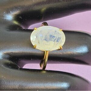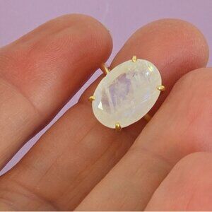 925 Sterling Silver Ring 6.75 with Natural Moonstone 1.4x1cm Gemstone