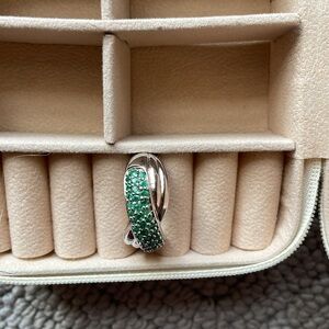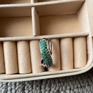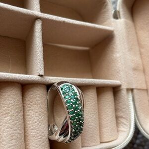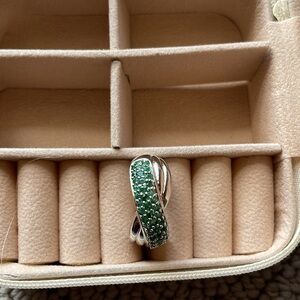 Beautiful 925 sterling silver, real round, cut emerald interlock ring in great condition Size 11
