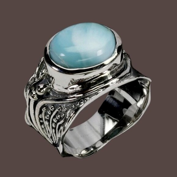 925 Sterling Silver Ring SZ 5.5 with Oval Larimar 11x9mm Gemstone