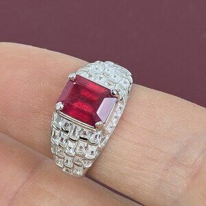 925 Sterling Silver Ring SZ 6.5 with Octagon Natural Ruby 9x7mm Gemstone