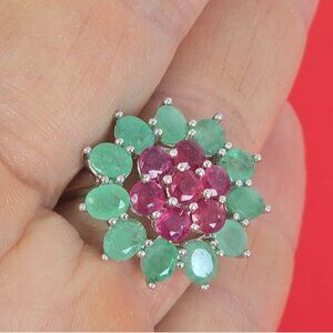 925 Sterling Silver Ring SZ 9 with Natural Ruby & Emerald Gemstone