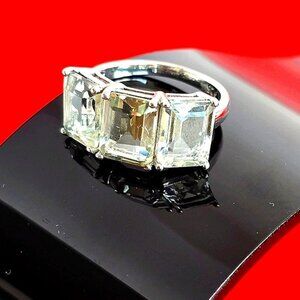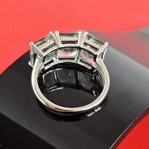 925 Sterling Silver Ring Sz 6.5 with Natural 3 Green Amethyst Stones 7x9mm