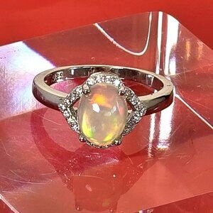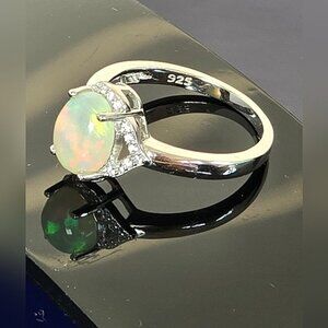 925 Sterling Silver Ring Sz 6.75 With Natural White Opal 6x9mm & Cz